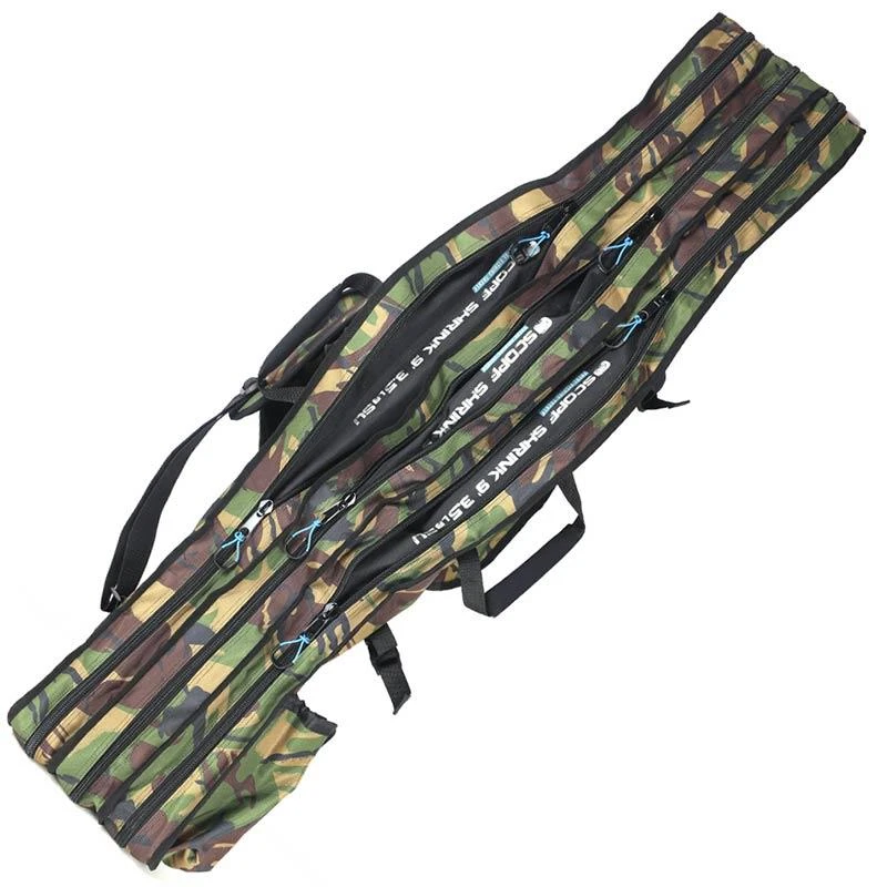 • Trois sections de fermeture Ă©clair sĂ©parĂ©es, faciles d’accès, pour loger trois cannes.