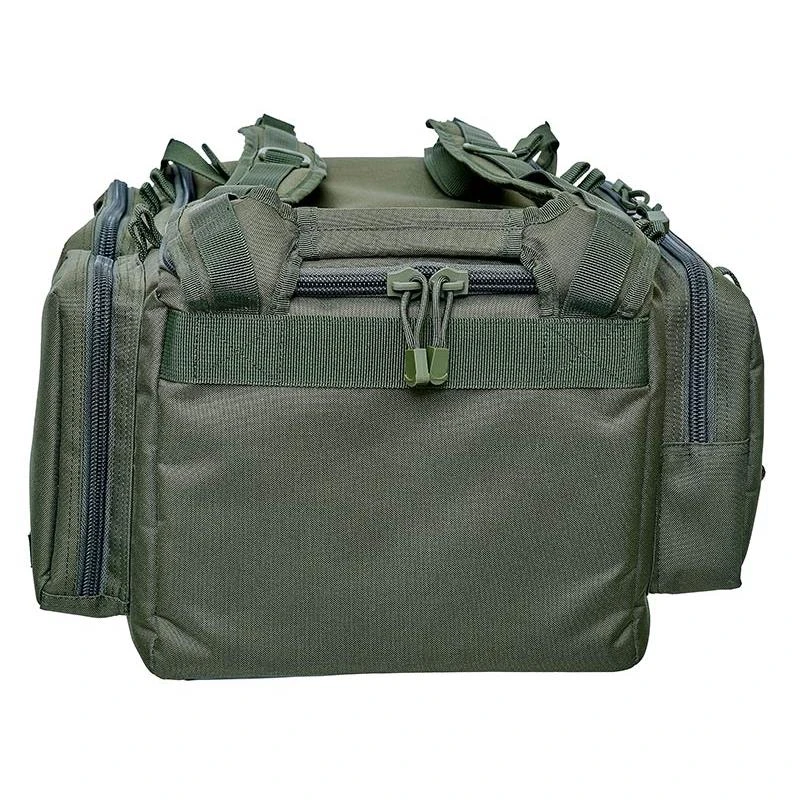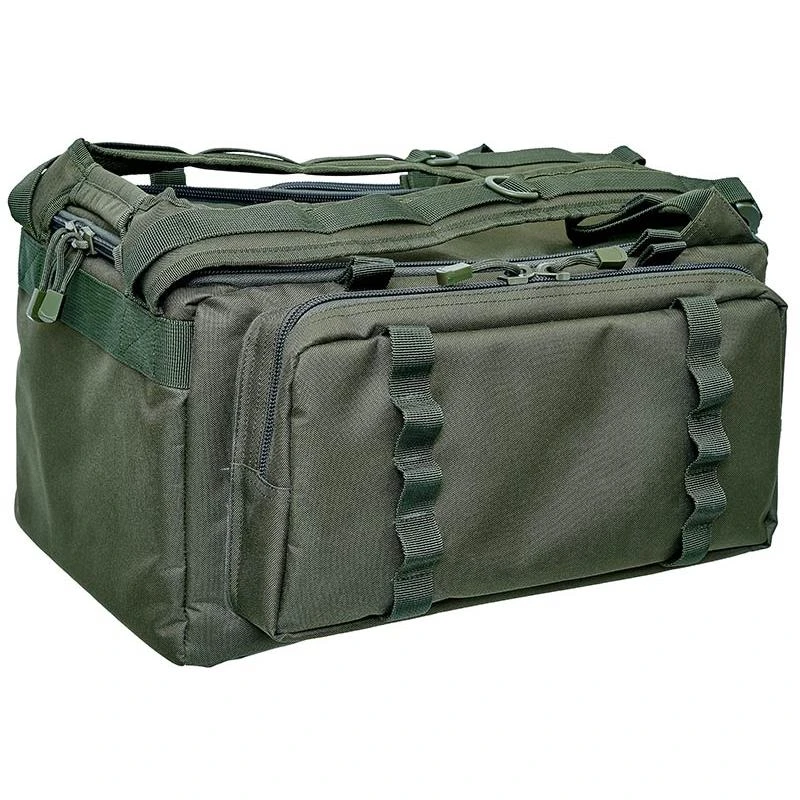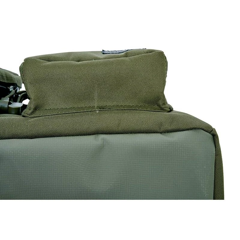 Ce sac dispose de 3 poches extérieures équipées de fermetures éclair, et de poches filets à l’intérieur . A noter également la présence de passants élastiques sur le sac destinés à recevoir jusqu’a neuf piques équipées de leur détecteur ou repose canne.