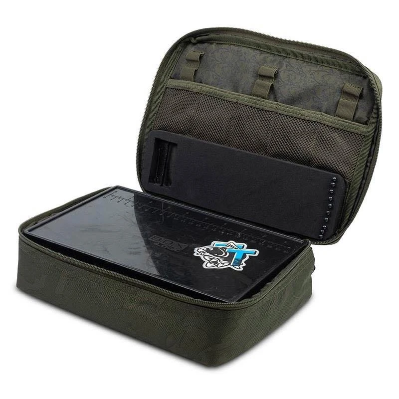 • Six boucles élastiques sous le couvercle pour les aiguilles et les outils d’eschage